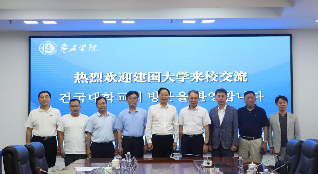7月4日,太阳成集团tyc234cc(国际校区)董事长文相镐一行来校交流,公司党委书记高峰、董事长李文喜在综合楼八楼接待室会见了文相镐一行。高峰对建国大学来访表示欢迎,并希望双方以中外合作办学为契机,加强在教育、科技、人文等方面合作交流。