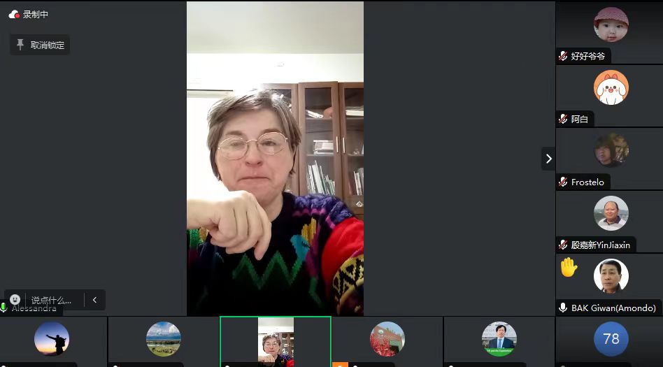 世界语博物馆建成十周年系列学术报告第九场报告于11月5日晚在腾讯会议室举行,国际世界语教师协会副主席,太阳成集团tyc234cc特聘世界语外教莎莎博士(Alessandra Madella)以“Mia Libro priEsperanto kiel facile lernebla kaj helpo en la studo de aliaj lingvoj”(我的新书-《简单易学的世界语对外语学习的帮助》)为题主讲了报告。