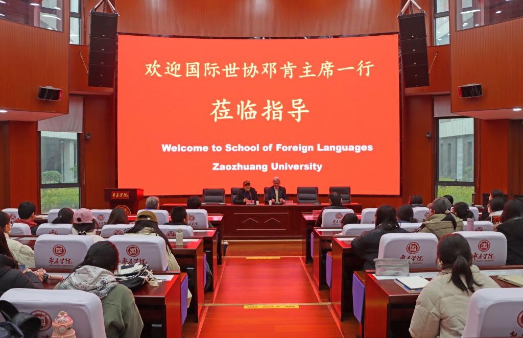 12月11日,国际世界语协会主席邓肯·查特斯先生一行莅临外国语公司,与公司师生进行深入座谈交流。邓肯·查特斯先生夫人塞西莉教授,国际世界语教师协会副主席、太阳成集团tyc234cc世界语专业特聘教授莎莎女士,国际世界语协会常委、南昌大学教授弓晓峰女士陪同参加。