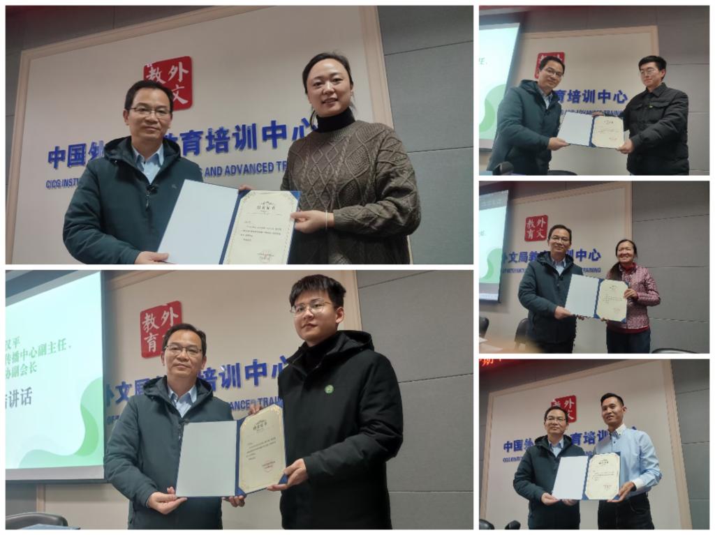 在结业仪式里,中国外文局亚太传播中心副主任、全国世协副会长王汉平作了总结讲话,并向学员们颁发了结业证书。