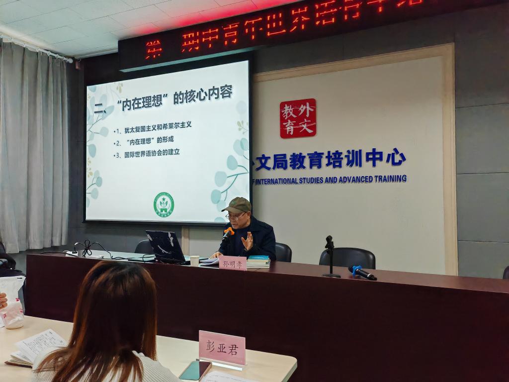 12月24日上午,公司世界语博物馆建设研究专家孙明孝以“世界语事业的初心和使命”为题向学员们讲述了世界语文化历史,孙明孝在报告中回忆了世界语产生的历史背景、早期的发展,并向学员们介绍了世界语运动的“内在理想”的核心内容,世界语者的定义和核心价值观,新时代世界语的作用和世界语者的使命等内容。