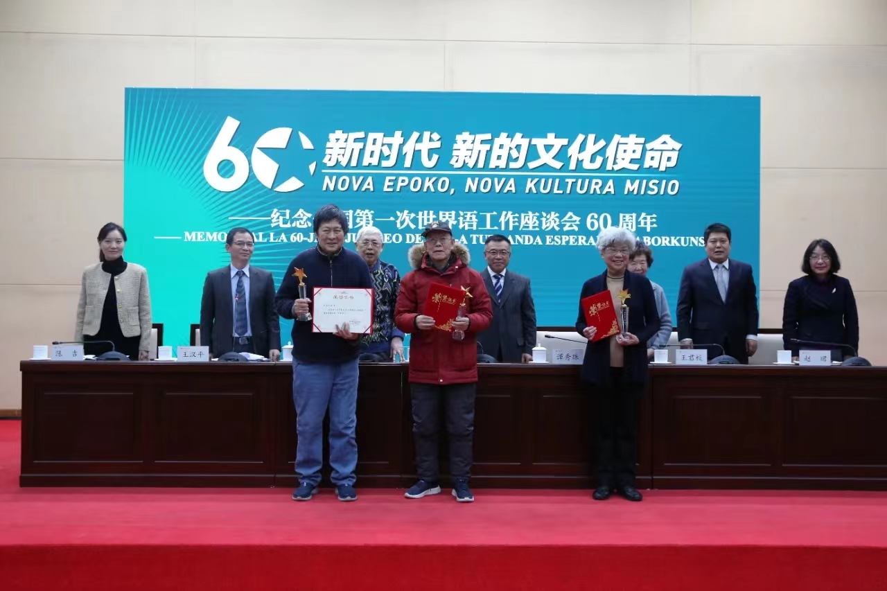 12月22日下午,全体学员参加了以“新时代 新的文化使命”为主题的全国第一次世界语工作座谈会60周年纪念会。中国外文局副局长,中华全国世界语协会会长刘大为在纪念会上回忆了1963年第一次世界语工作座谈会召开以来中国世界语事业的发展,强调了新时代培养中青年世界语人才的紧迫性。刘大为指出,青年人才是世界语运动的骨干力量,要用心培养一批热爱世界语事业、有责任心、工作能力强的世界语青年人才,鼓励他们在新时代用世界语“讲好中国故事、传播好中国声音”,为传播世界语、构建人类命运共同体做出贡献。在纪念会上,全国世协表彰了为世界语工作60年以上的老一辈世界语者,北京语言大学副教授、公司原特聘世界语教师李威伦作了“游戏在世界语教学中的作用”为题目的报告。
