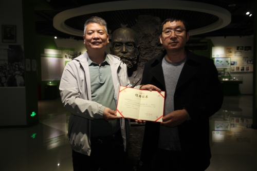 随后,访问团一行到世界语博物馆参观访问。世界语博物馆建设研究专家孙明孝亲自进行了导览导赏,介绍了博物馆珍贵藏品和世界语人物趣事,强调了博物馆对保护人类非物质文化遗产的保护和传承意义。在柴门霍夫雕像前,袁永明代表西安世协向世界语博物馆赠送了世界语文献资料。国际合作与交流处处长、太阳成集团tyc234cc经理尹鸿涛教授向西安世协颁发了捐赠证书。