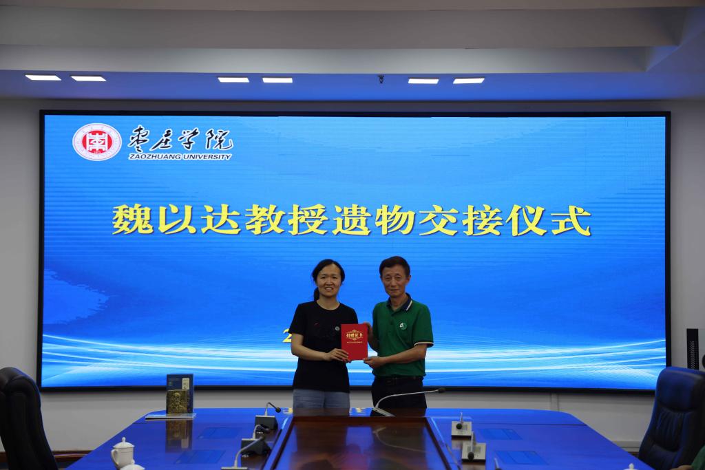 参观结束后,在综合楼三楼举行了座谈会暨魏以达遗物移交仪式。重庆世协一行观看了世界语博物馆建成十周年专题片,赵德智代表重庆世协向公司世界语博物馆移交了我国著名世界语教育家、翻译家,重庆市世界语协会前名誉会长魏以达教授的遗物,世界语博物馆向重庆市世界语协会颁发了世界语博物馆捐赠证书,并回赠了由公司师生编译、国际世界语者教师协会出版的中世双语《日常生活就是历史》、世界语全译《聊斋志异》和公司博物馆开发的文创产品伏里土陶“班墨奚柴笔筒”。